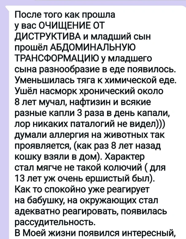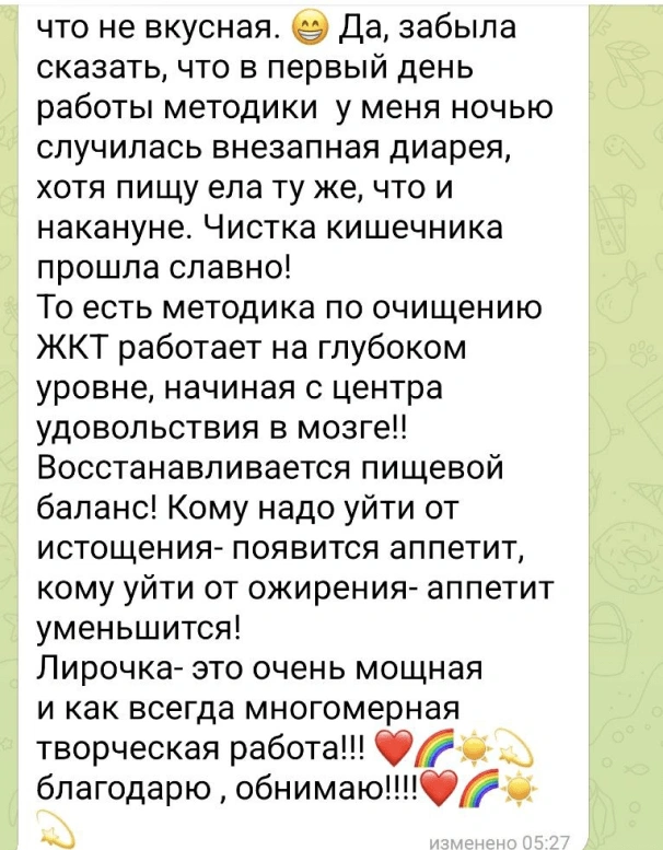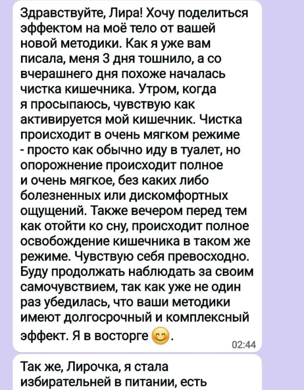 Даже читая этот сайт, вы наполняетесь чем то, что для вас необходимо в данный период. Все происходит неосознанно. Ощущение легкости приходит со временем. Спустя несколько дней. Предлагаю оценить свои ощущения через неделю и искренне поделиться ими в мой телеграм-канал.