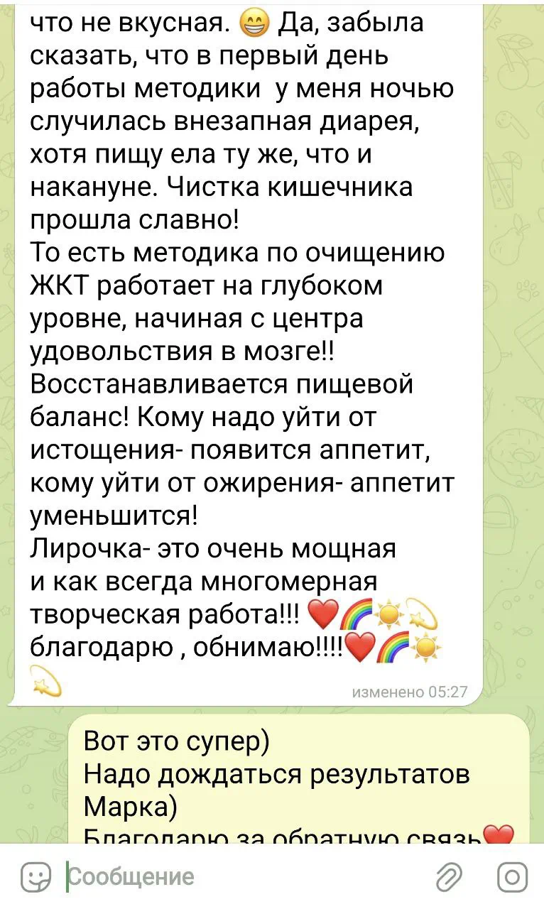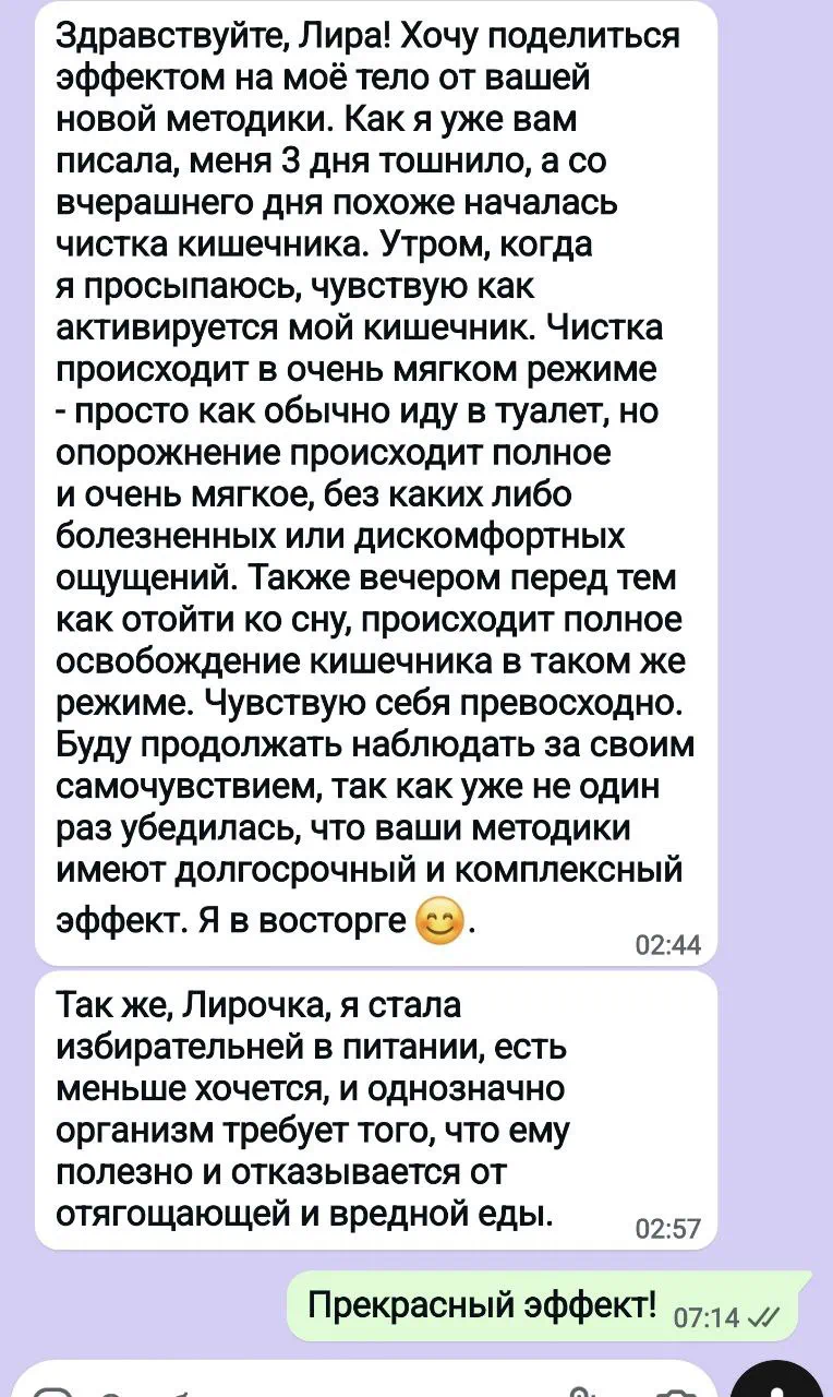 - Тут же проявился «план лечения», и я приступила к очищению себя.