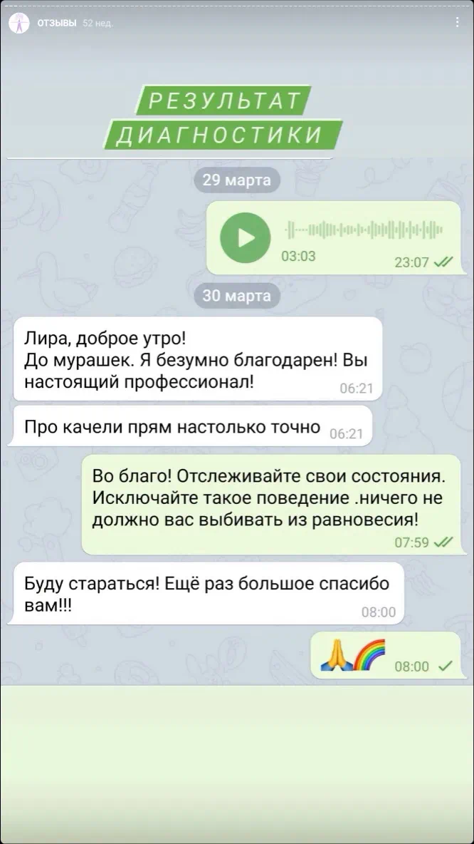 Итог отправляется в аудиосообщении для прослушивания и анализа.