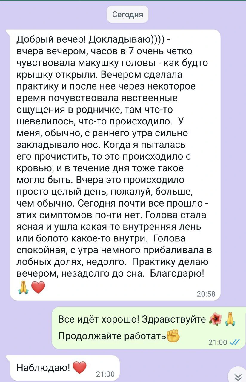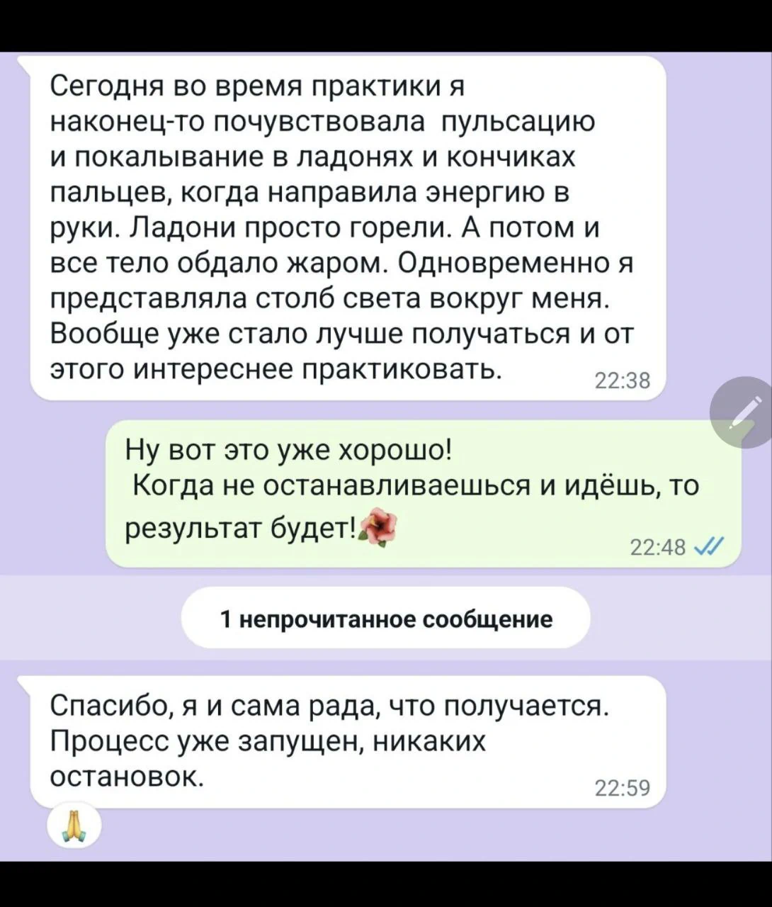 Теперь почти у 100%, кто работает по этой технологии, идут ощущения собственных энергий в теле и раскрываются способности.