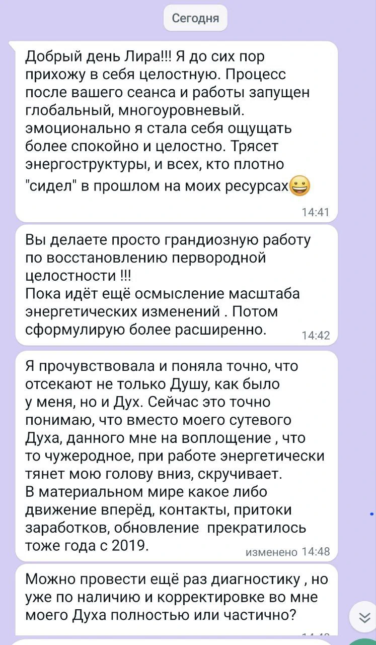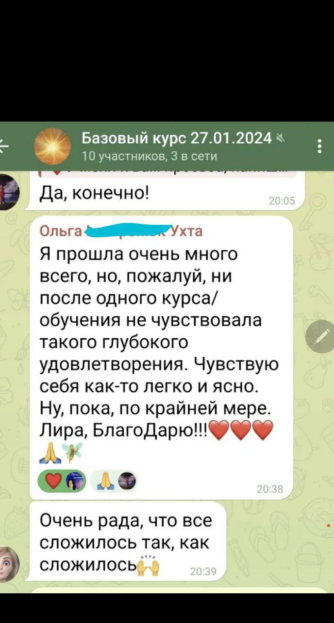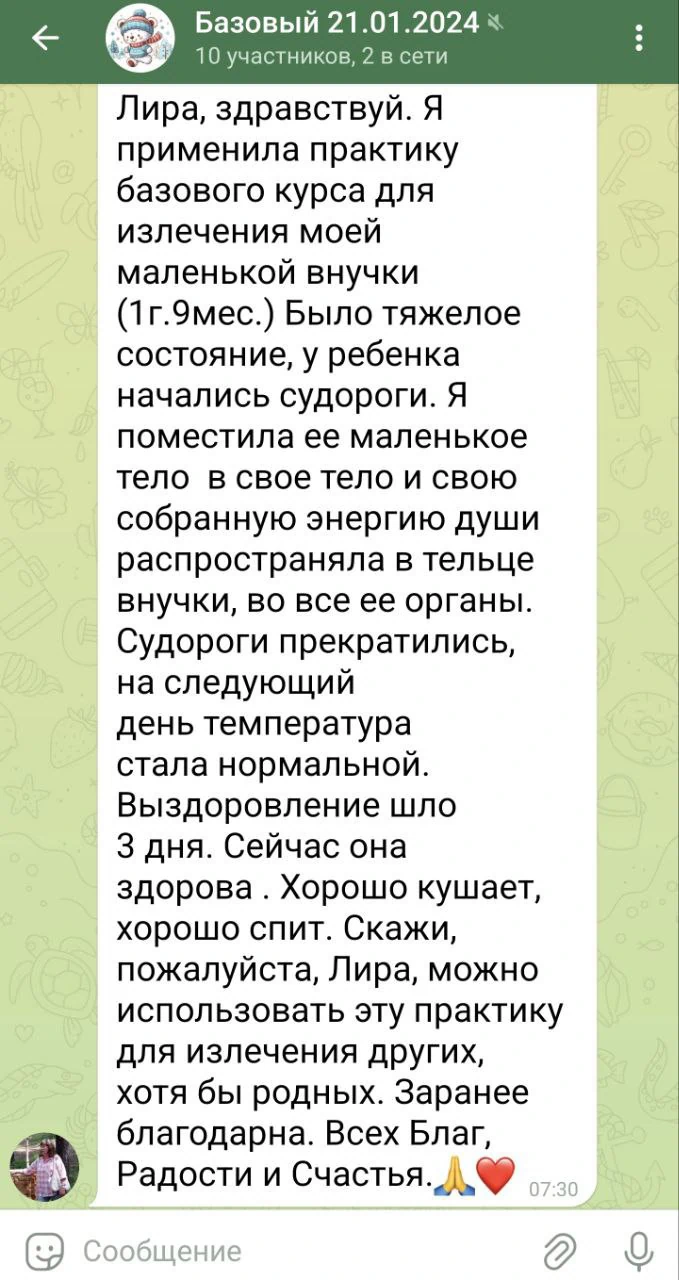 Однажды, после просмотра фильма «Лекарь» я сделал запрос во вселенную послать мне мастера, кто поможет мне в моей ситуации. Спустя некоторое время я встретила мастера, который не имел специального обучающего руководства, а просто работал со мной на тонком плане. За 4 года нашего взаимодействия я научилась наблюдать за ее творением. Пробовала сама, ежедневные, многочасовые практические сессии с самой собой постепенно давали результаты.