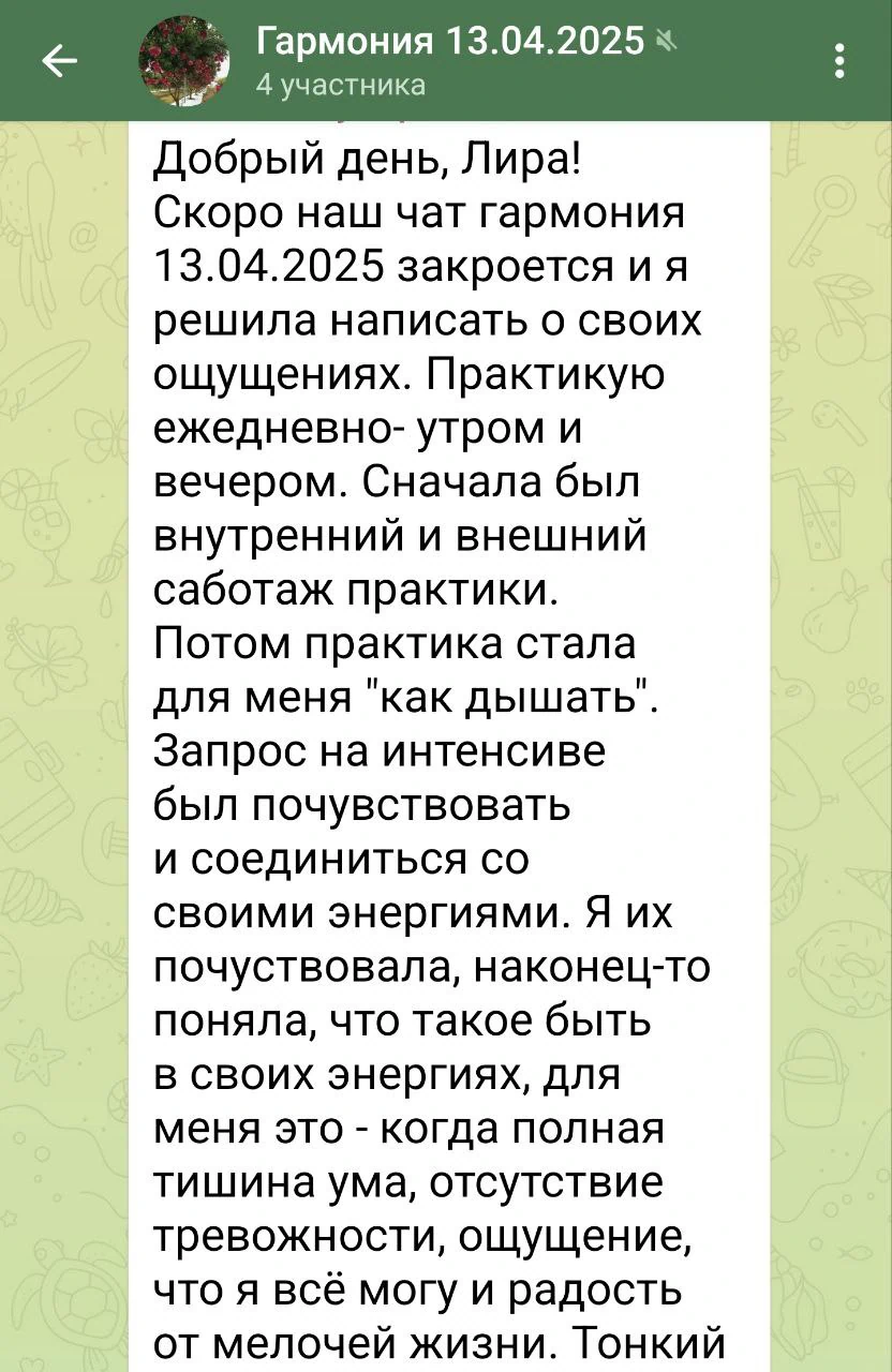 И вот, в какой-то из дней очередной работы я почувствовала то, к чему долго шла. Я увидела, услышала, начала понимать, как это пройти в свои энергии, начать ими управлять. И быстро записала алгоритм.