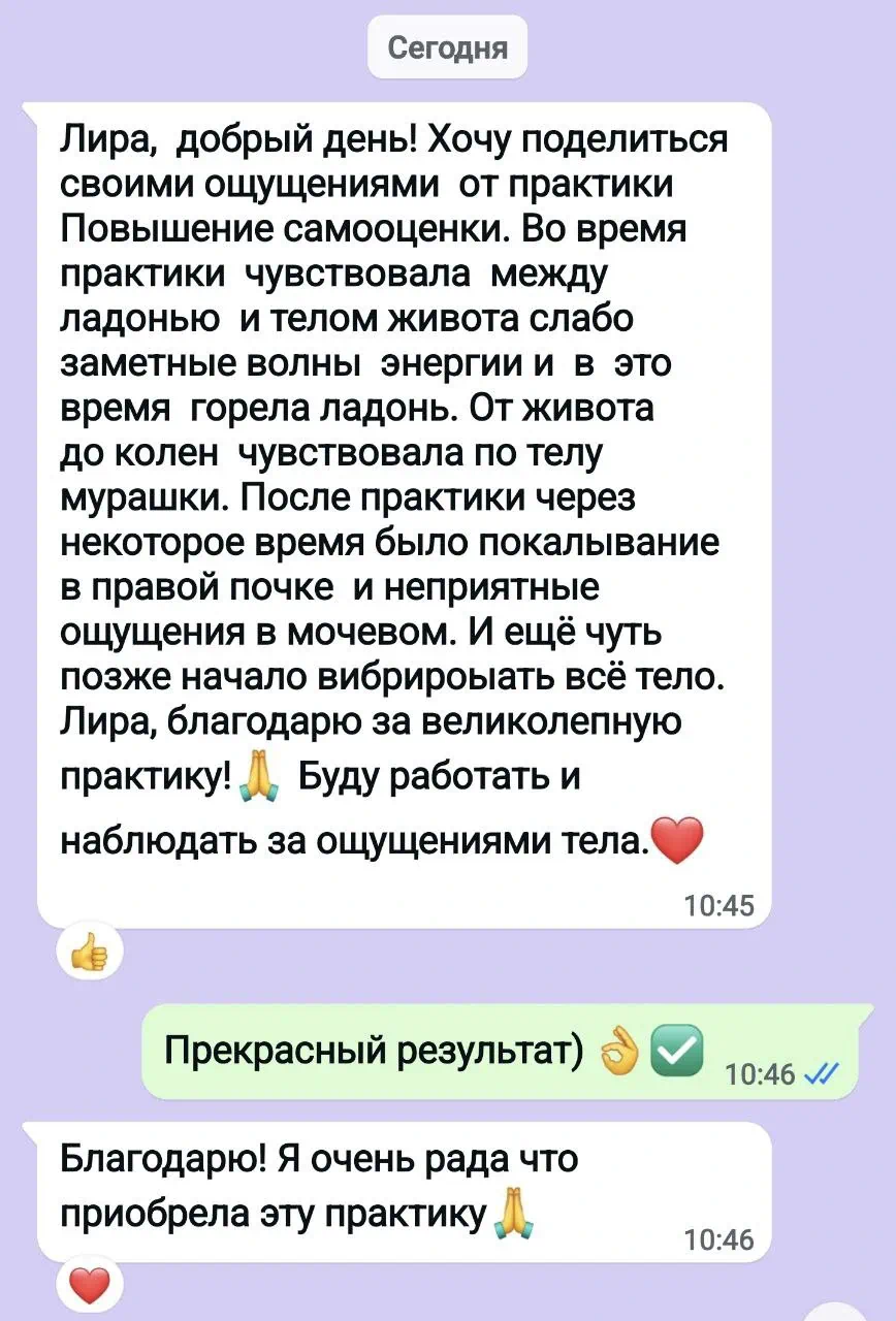 Специальные практики позволяют почувствовать свой организм, свою значимость и решить те проблемы, которые накопились с детства и мешают в полной мере проявить Ваш потенциал.